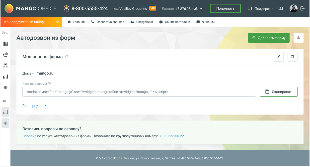 - Автодозвон из форм — это решение MANGO OFFICE для сбора заявок с номером телефона из форм обратной связи.