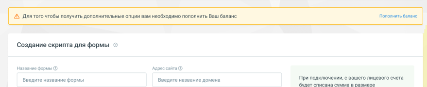 - В случае, если права есть, но денег на счету не хватает, то будет выведено соответствующее предупреждение со ссылкой на раздел ЛК для пополнения баланса.