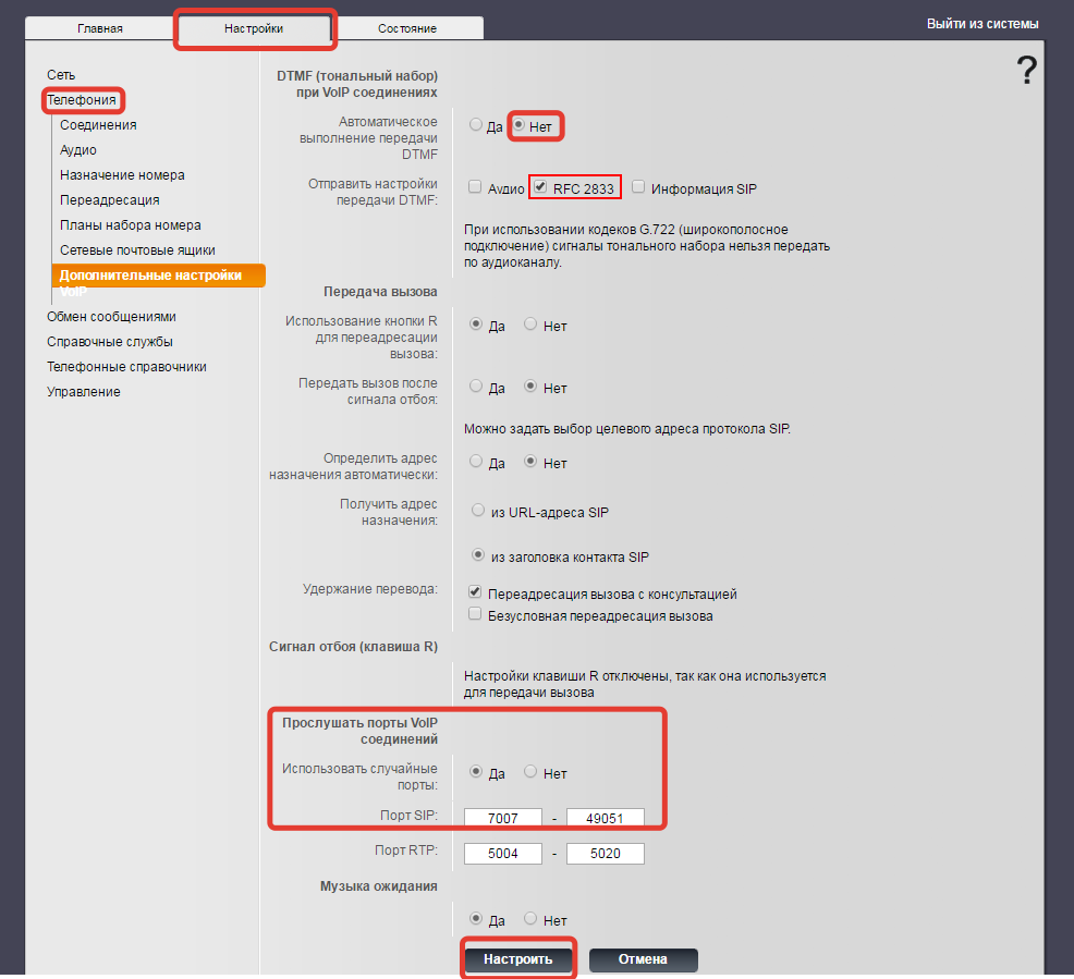 Шаг 3. Слева заходим в подраздел "Дополнительные настройки VoIP" и настраиваем, как на скриншоте ниже.